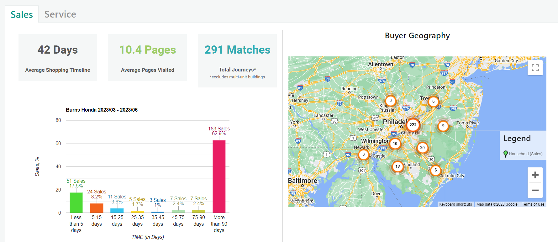 The Buyer Journey screen averages known online behavior and engagement with offline purchasing behavior (transactional data).