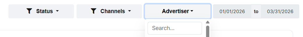 - Search Advertiser, filter for a specific client or all clients.